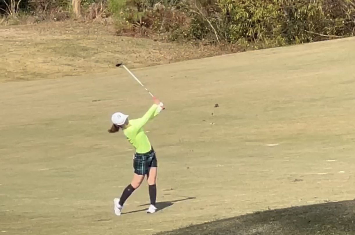 特にこの組にはボクも注目しているビアンカ・パグダンカナンがおりまして、笹生優花と東京五輪にも出場したフィリピンのスーパー飛ばし屋のプレーも見どころでした。渋野さんをドライバーで数十ヤード置いていくわけですが、キャディーさん含めてこの2組は明らかに仲のいい感じ。それにしてもビアンカは普段ヘラヘラ陽気な感じなのに、ショットを1ミリでもミスるとクラブを叩きつけて怒るという、これは東南アジア特有のメンタルマネジメントなのでしょうか。タイの新人王、パティ・タバタナキットにもそんな傾向があるように感じます。