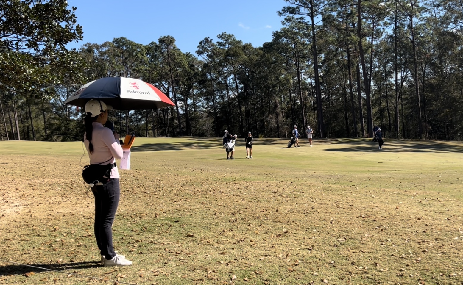 1時間かそこら歩いてどうにか追いついた時、渋野組はもう16番ホールに達していました。
