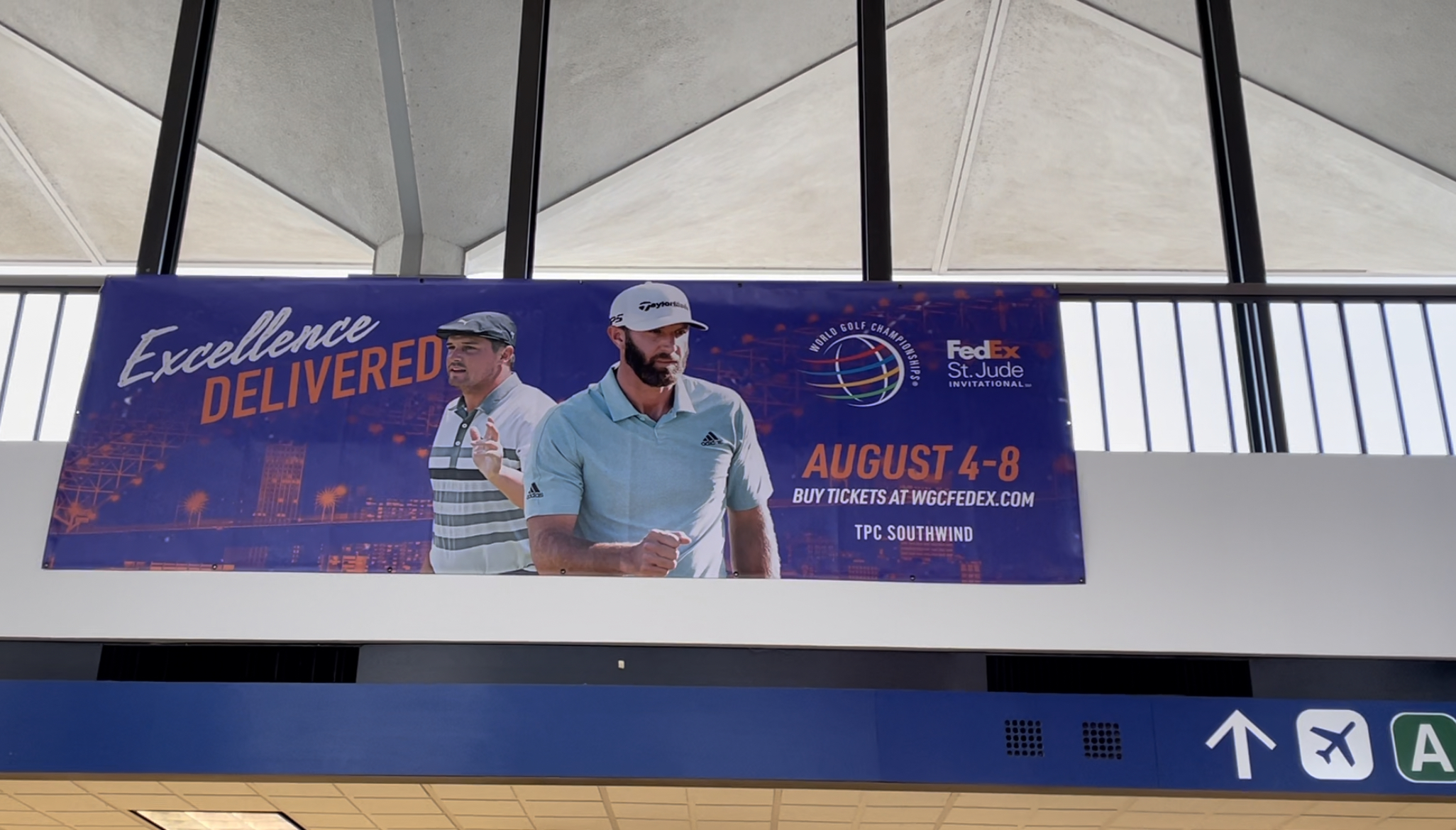 メンフィスの空港には、出場辞退を早々に宣言したダスティン・ジョンソンと、コロナ陽性判定で五輪欠場を余儀なくされたブライソン・デシャンボーをフィーチャーした大会ポスターが掲げられていました。