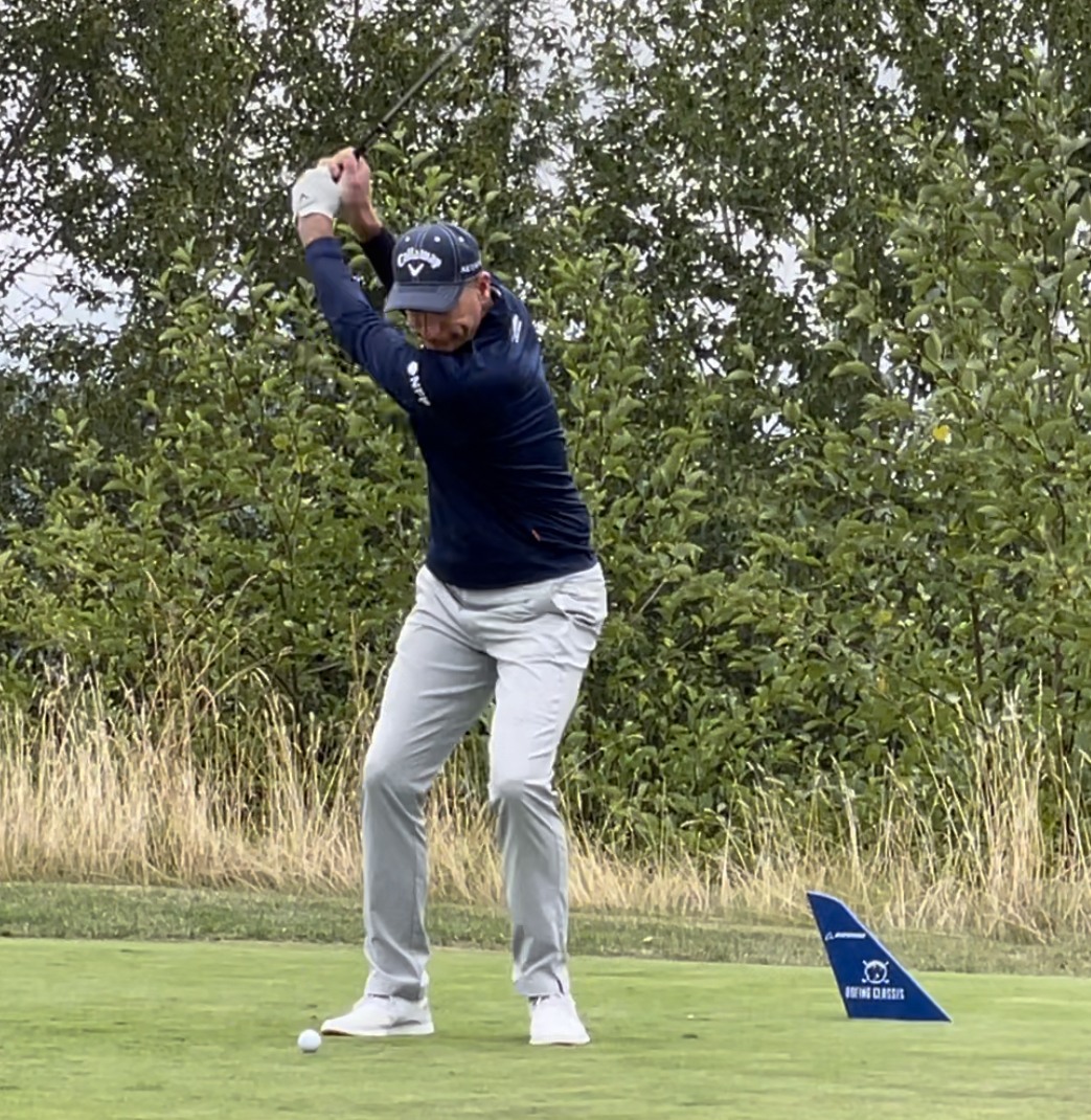 このエリアで個人的にもよくゴルフをしますが、確かに霧の発生頻度は高い。まぁしょうがないのでボーっと選手の調整風景を眺めたり、偶然会った協賛企業の知り合いと話したりして時間をつぶしていると、状況の改善に伴いプレーが再開されました。