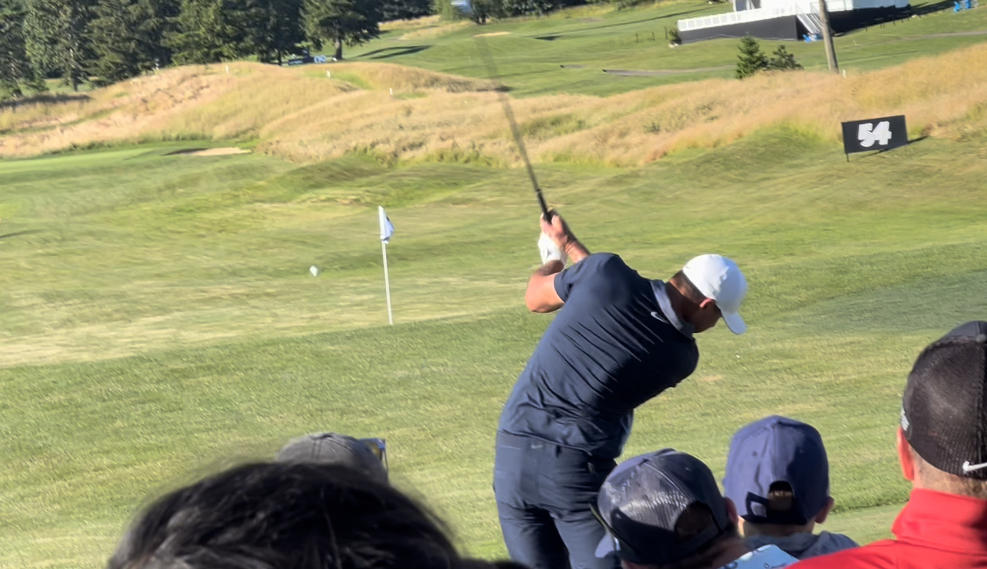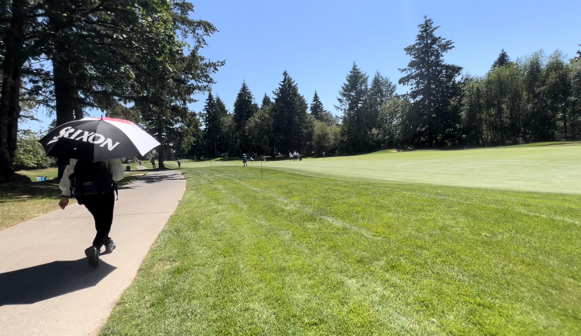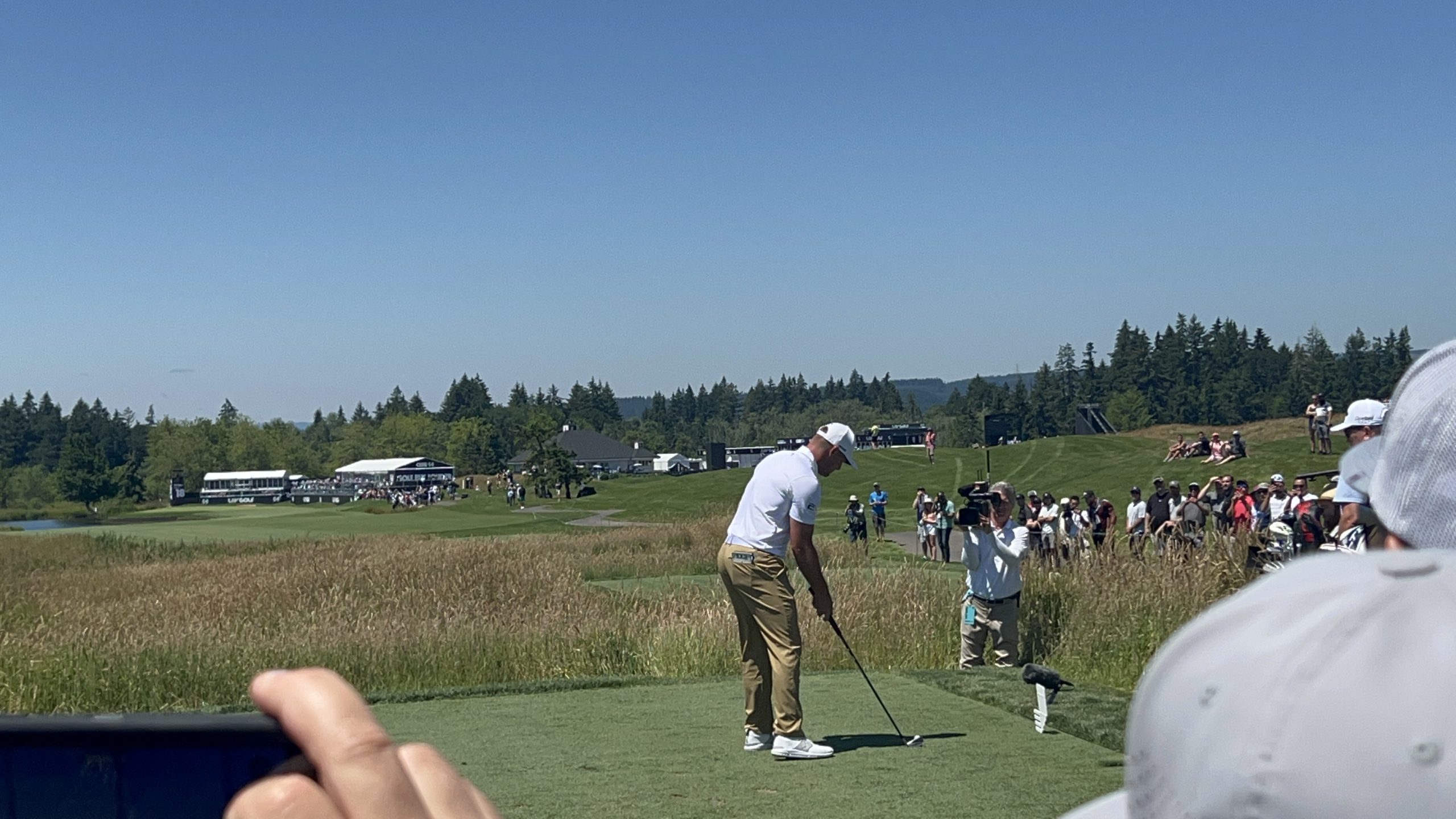 かつグループ間を横断観戦するにはコースレイアウトも重要です。各ホールがハザードで完全にセパレートされているコースでは地獄です。ショートカットできないので来た道を戻るかひたすら待つしかありません。これは時間と体力を著しく消耗する行為なので望ましくなく、その点パンプキンリッジはリンクスコース的な佇まいもあってショートカットルートも所々に用意されているため効率的に複数の選手を追うには適した環境でした。